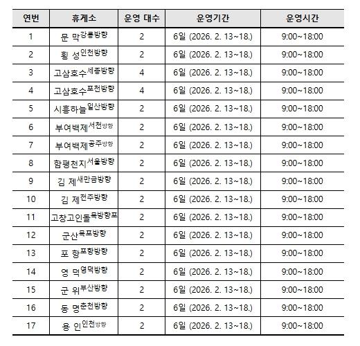 아울러 연휴 기간 중 이용자 불편을 최소화하기 위해 전화상담 창구(☏ 1661-9408) 등 비상연락체계가 운영된다.