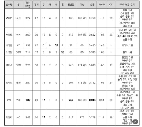 2025 신한 SOL뱅크 KBO 리그 9~10월 월간 MVP 후보 발표