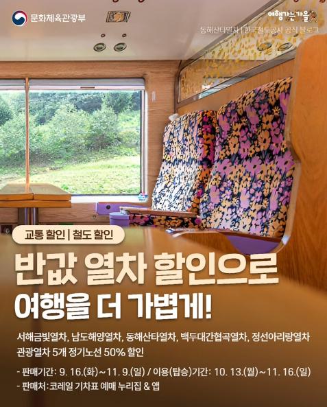 문화체육관광부, 기차타고 떠나요 내일로패스 할인